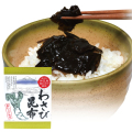 静岡県 伊豆産の茎わさびと北海道産の昆布をじっくりと炊き上げました。照りのあるやわらかな昆布の旨味をわさびがピリッとひきしめます。※保存料・着色料は使用しておりません。